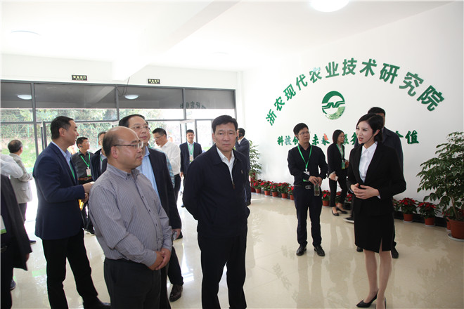 10月29日,參加全省農業“兩區”建設暨產業發展大會的與會代表來到位于余杭瓶窯的浙農現代農業綜合服務中心參觀考察。
