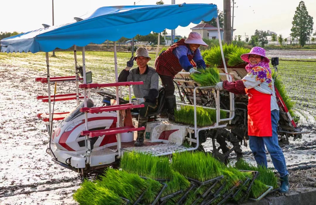 夏日炎炎,搶抓農時抓好夏收夏播,對全年糧食豐收意義重大。在位于嘉善西塘的浙農耘糧油未來農場,2.3萬畝小麥已于日前全部收割并烘干入庫,經測算畝產超過700斤;收割完成后,2.8萬畝晚稻隨即壓茬推進播種,其中采取機插秧的有1萬畝,田間秧苗整齊挺立,已為稻田鋪上了一抹新綠。為持續推動種植生產向每畝單產高效率提升轉變,農場持續優化育秧、播種等種植環節,通過全程機械化手段與智能化管理,在省時省力的同時降低生產成本,為豐產豐收打下堅實基礎。