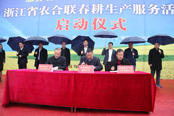 3月20日,由浙江省農(nóng)合聯(lián)主辦,嵊州市委市政府、浙農(nóng)集團股份有限公司承辦的以“服務(wù)現(xiàn)代農(nóng)業(yè),推進(jìn)鄉(xiāng)村振興”為主題的全省農(nóng)合聯(lián)春耕生產(chǎn)啟動儀式在嵊州舉行。當(dāng)天開展了“政策、科技、農(nóng)資、信息、金融”五下鄉(xiāng)活動,召開了推進(jìn)農(nóng)業(yè)社會化服務(wù)體系建設(shè)現(xiàn)場會,簽署了涉及為農(nóng)服務(wù)合作、新型莊稼醫(yī)院建設(shè)、訂單農(nóng)業(yè)合作等方面協(xié)議,向相關(guān)合作社、家庭農(nóng)場或種植大戶贈送了智慧農(nóng)資服務(wù)包。浙江省農(nóng)資流通協(xié)會、浙農(nóng)集團等單位發(fā)出了“服務(wù)現(xiàn)代農(nóng)業(yè) 推進(jìn)鄉(xiāng)村振興”的倡議。省農(nóng)合聯(lián)副理事長、執(zhí)委會主任、省供銷社主任邵峰,紹興市政府副市長陳德洪等出席啟動儀式。